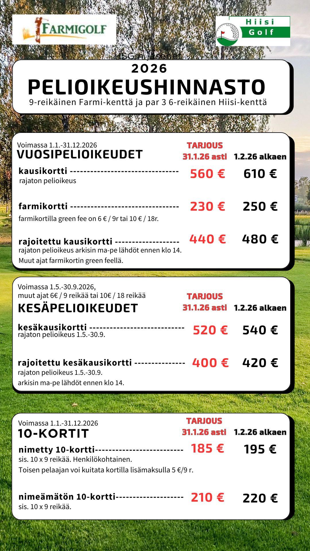 Golfpiste.com -etukortti on voimassa 1.5-30.9