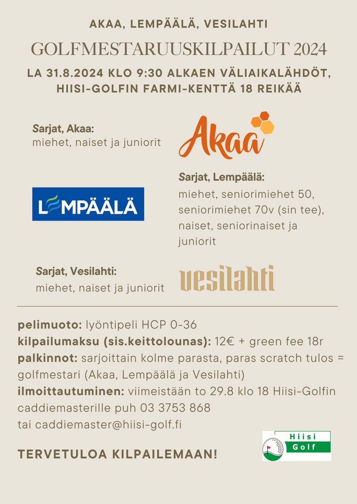 Akaa, Lempäälä ja Vesilahti, Golfmestaruuskilpailut 2024
