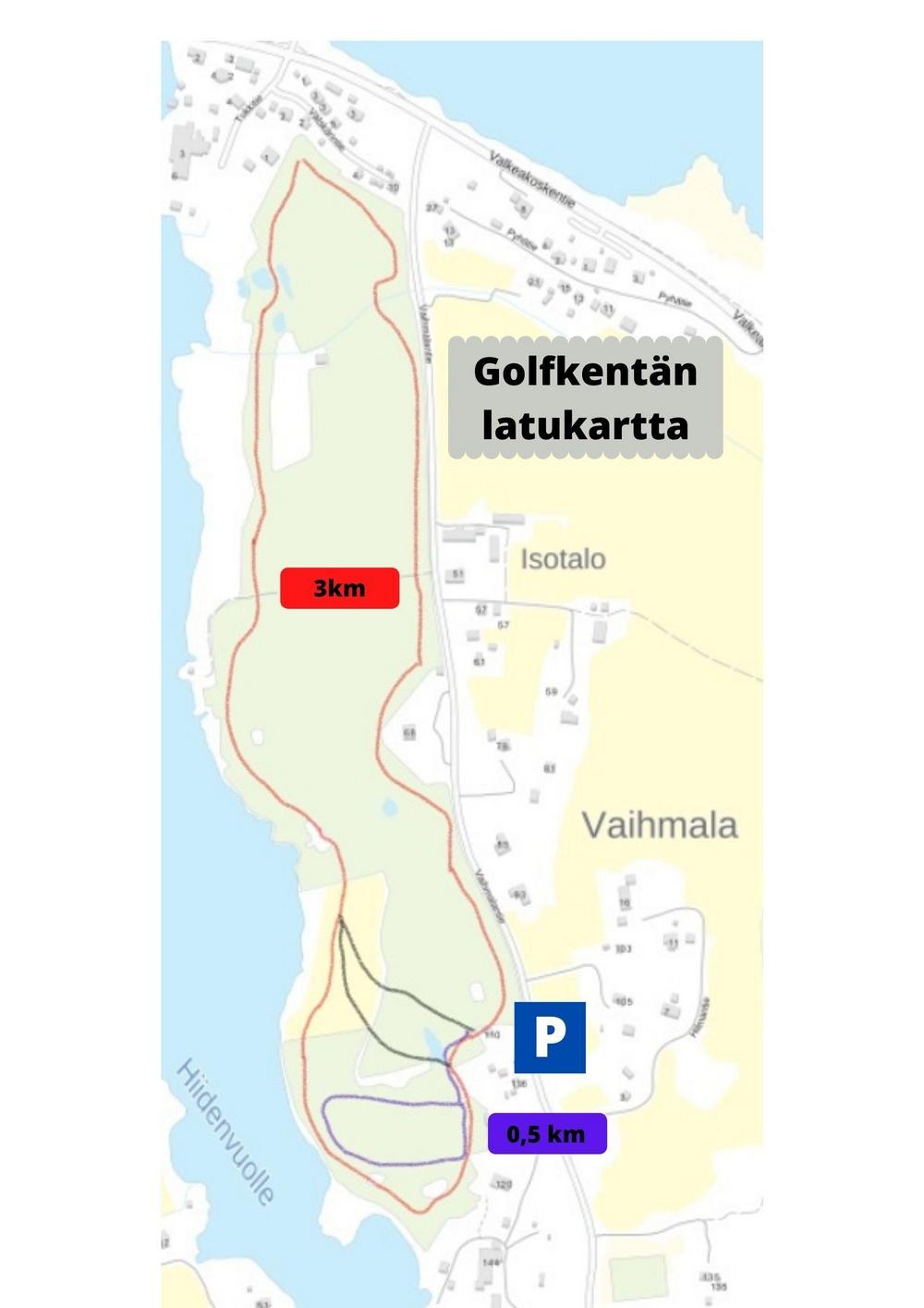 Golfkentälle on ajettu perinteisen latu-ura. Reittejä on erimittaisia (n.0,5 km - 3km), katso kuva alla. Golfkentän alueella hiihtäminen on sallittua vain latukoneella ajettua latu-uraa myöten. Liikkuminen muilla golfkentän alueilla on ehdottomasti kielletty. Jalan tai suksen alle pakkautunut lumi aiheuttaa herkimmillä nurmialueilla kuten viheriöillä jäätyessään tuhoa nurmelle (jääpolte, juurten kuoleminen jne.). Vaikutukset saattavat näkyä pitkälle kesään.