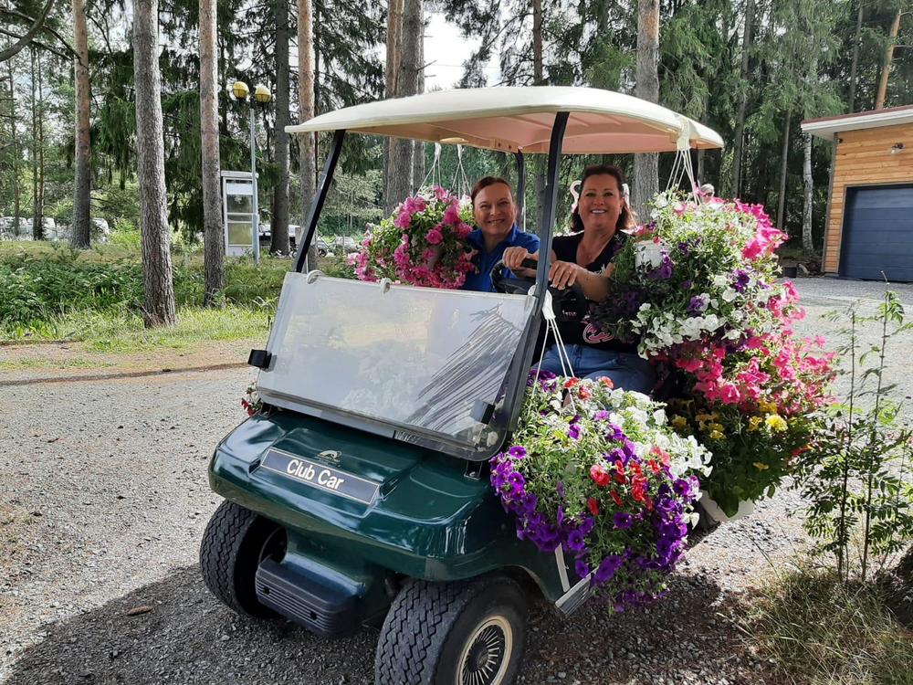 Onnittelut vielä lohkovoittajille ja kiitos Eeva ja koko kentänhoitotiimi hyvin hoidetusta kentästä ja kiitos Hiisi-Golf ry:lle myös upeista kukista, mitä saimme (me kukkaistytöt Paula ja Maru) viedä tiiauspaikoille ja Taukotuvan ympäristöön. Kukat haettiin Mäkelän puutarhalta.